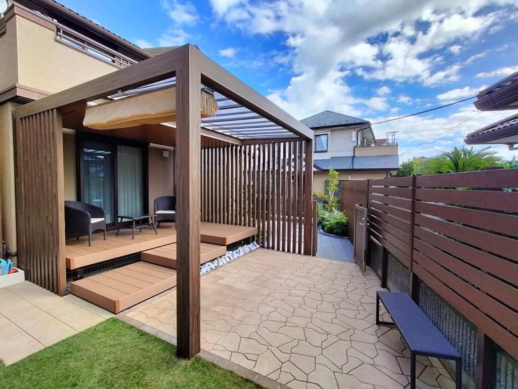 2024年12月に庭リフォームが完成しましたO様邸にて、改めましてホームヤードルーフやその周辺の撮影をいたしました。